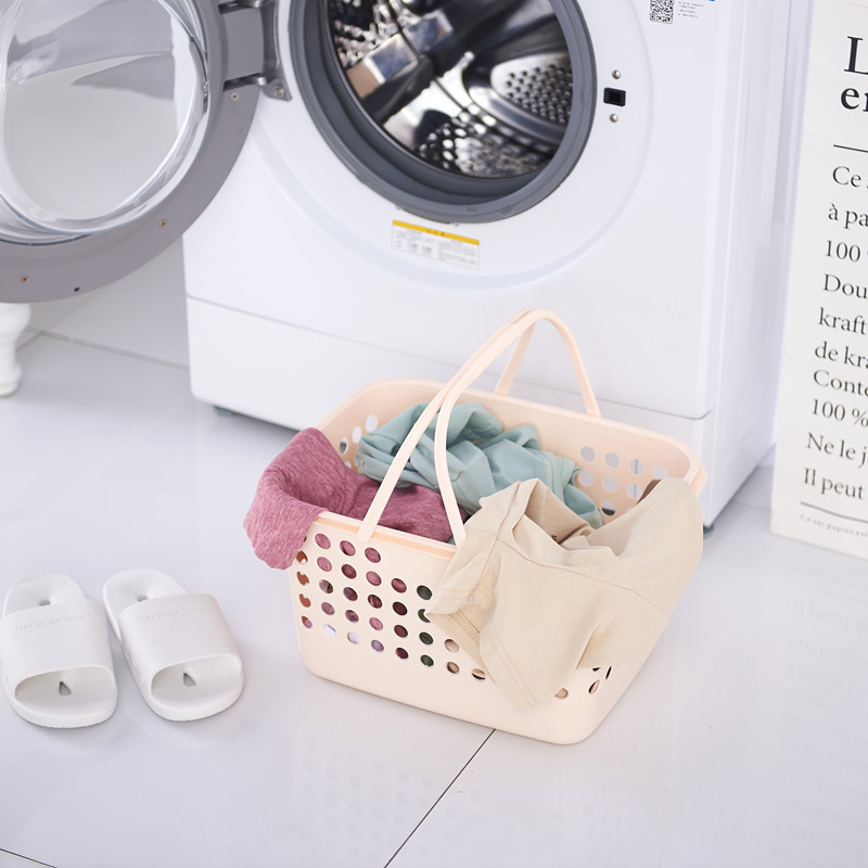 厂家现货批发棉绳带耳塑料篮浴室脏衣篮日式大容量手提塑料收纳篮