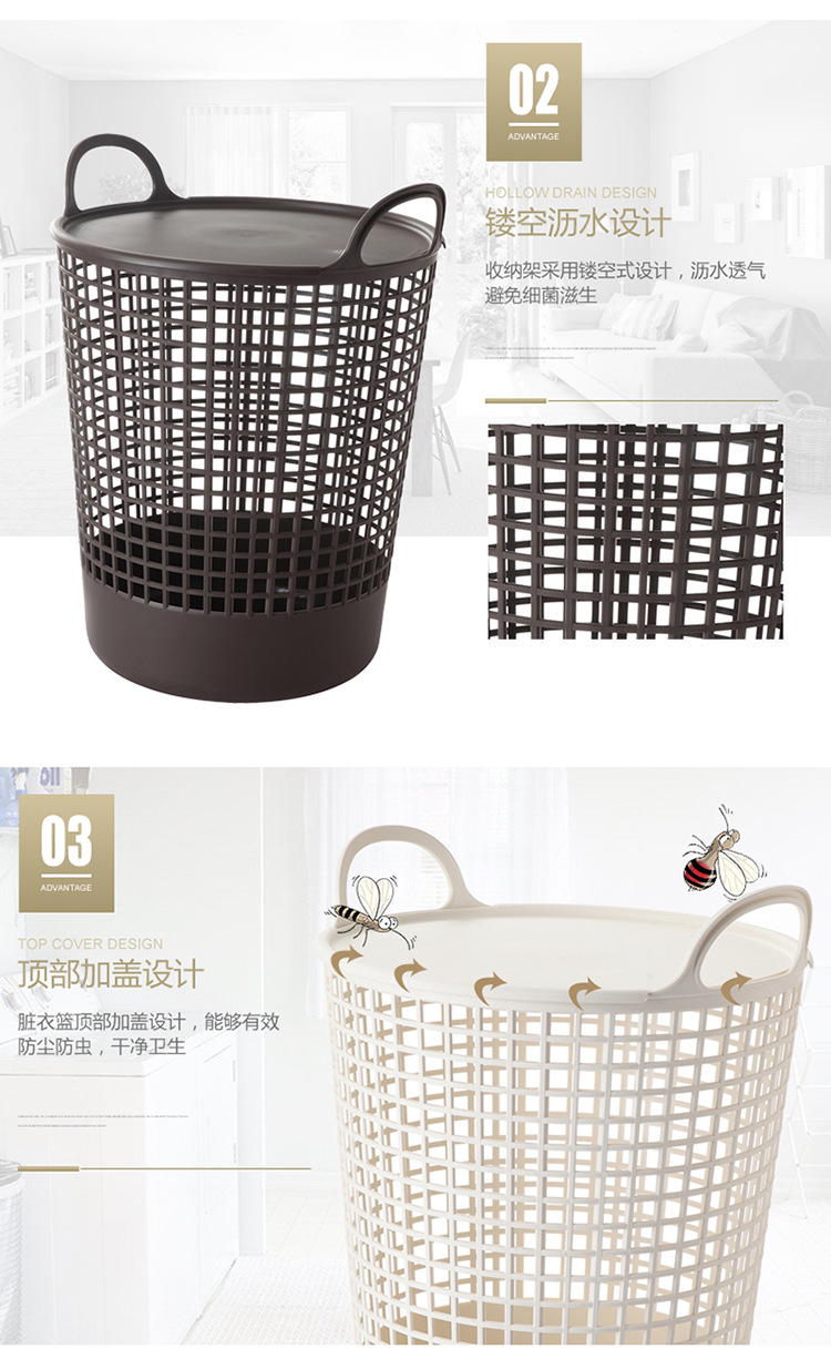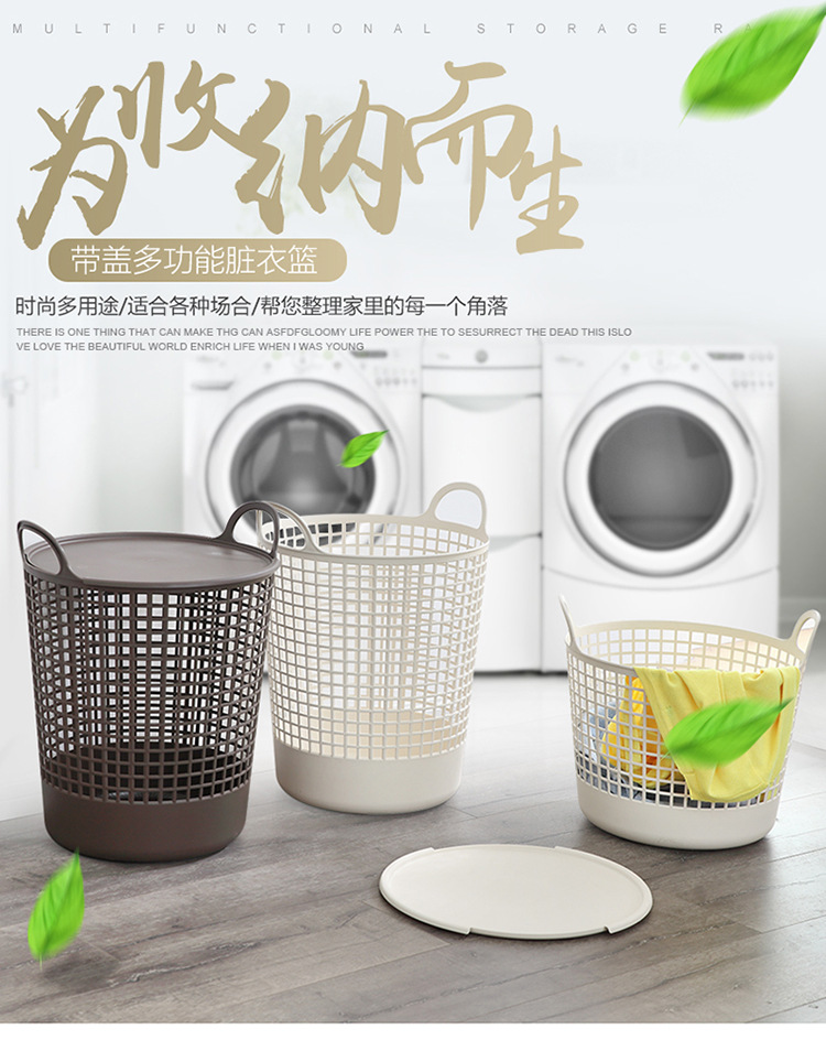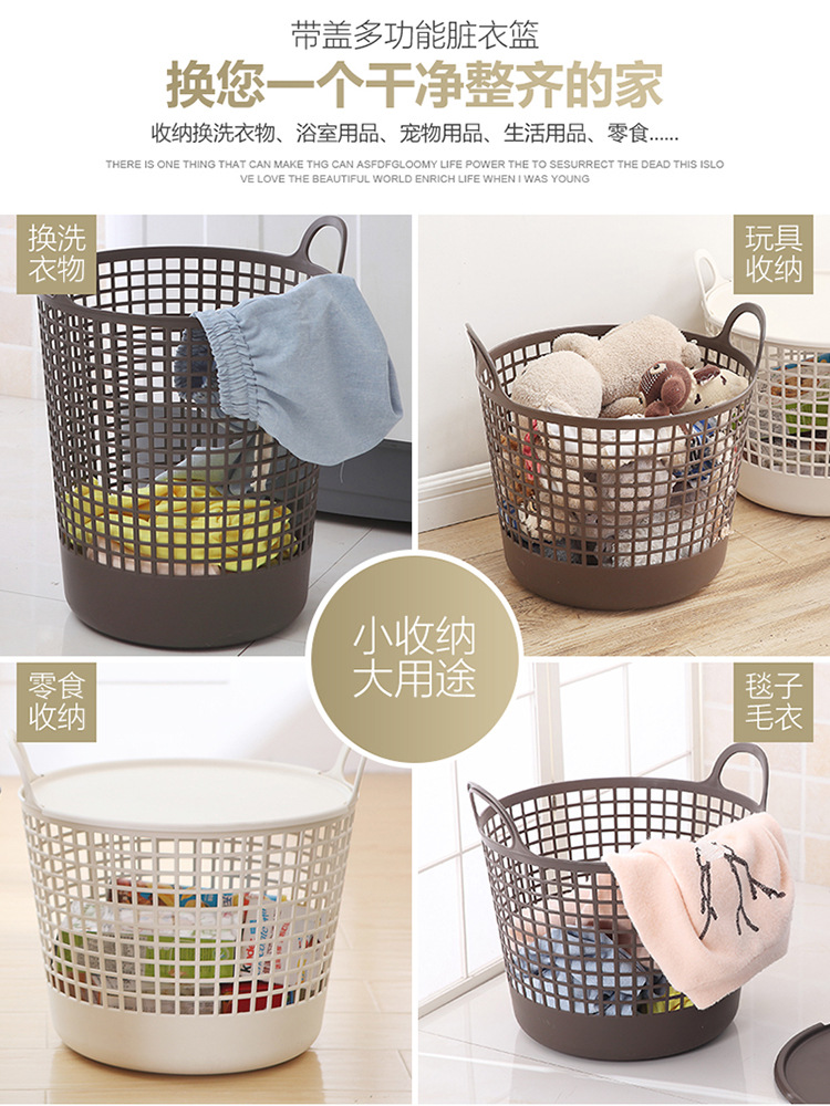 厂家现货批发 塑料收纳篮 日式洗衣篮 大号带盖脏衣篮 手提收纳篮